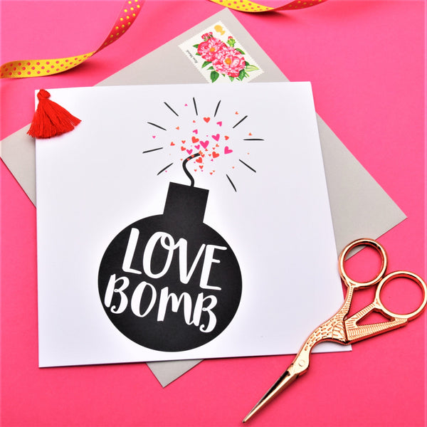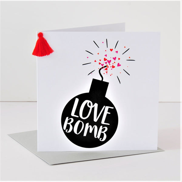 Valentine's Day Card, Bomb, Love Bomb, Embellished with a colourful tassel