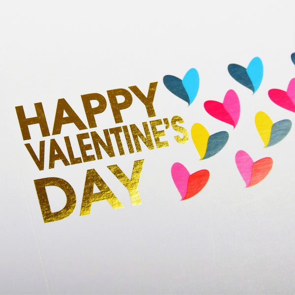 Valentines Day Card, Hearts, text foiled in shiny gold