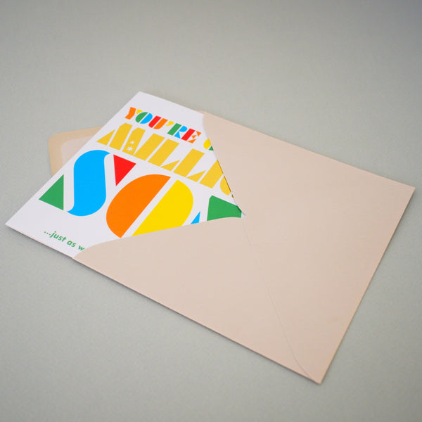 This beautiful vibrant foiled Birthday Card for Son is from the amazing Billboard range. Designed with bright, fun, bold text, and the writing is foiled in shiny gold. Printed on high quality board from sustainable sources with a grey envelope.