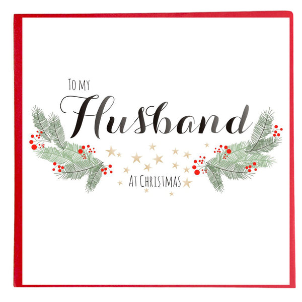 Christmas Card, Fir & Berries, To my Husband at Christmas