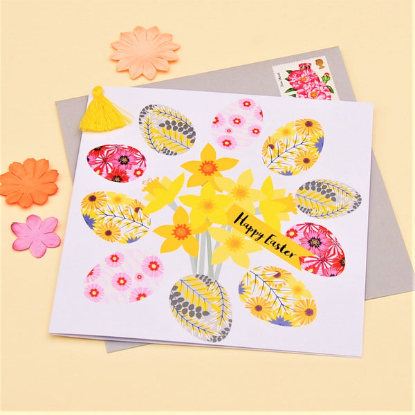 Easter Card, Daffodils, Happy Easter, Embellished with a colourful tassel