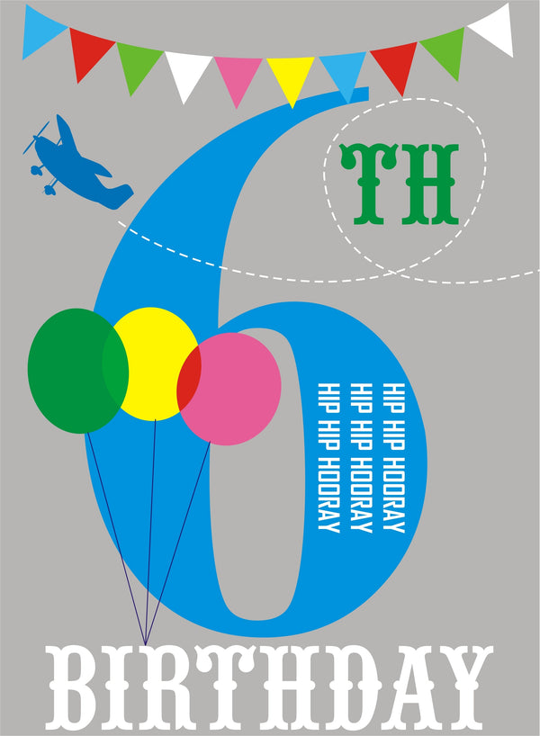 Birthday Card, Blue Age 6, 6th Birthday, Hip Hip Hooray