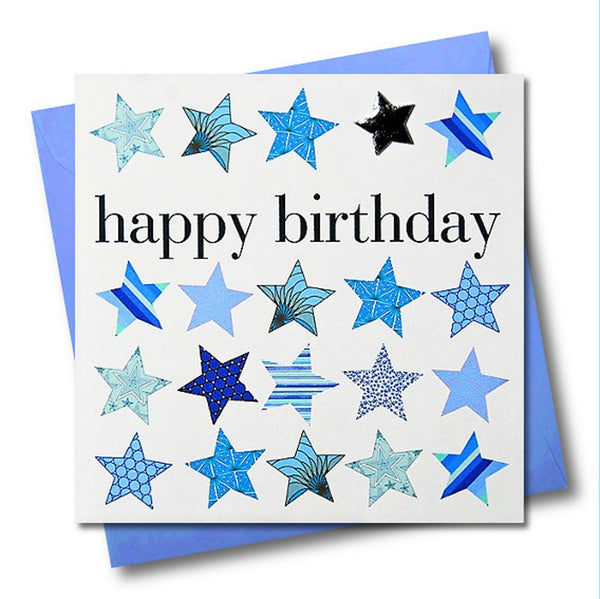 Birthday Card, Blue Stars, Happy Birthday, Embellished with a shiny padded star