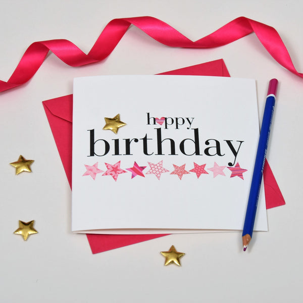 Birthday Card, Pink Stars, happy birthday, Embellished with a shiny padded star