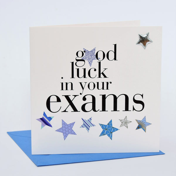 Exam Good Luck Card, Blue Stars, Embellished with a padded star