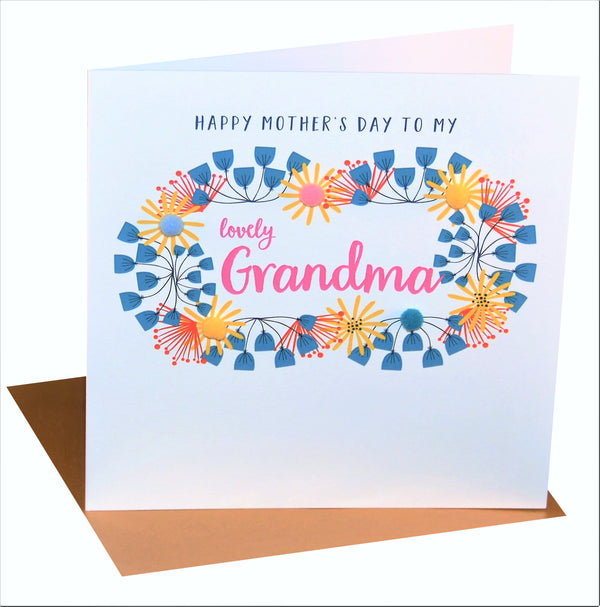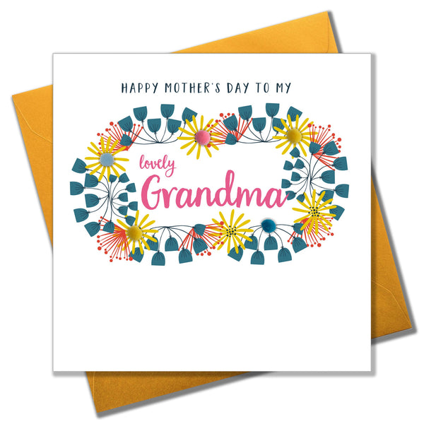 Mother's Day Card, Floral, Lovely Grandma, Embellished with colourful pompoms