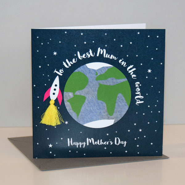 Mother's Day Card, World, Best Mum, Embellished with a colourful tassel