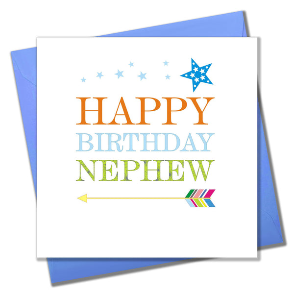 Birthday Card, Blue Stars and arrow, Happy Birthday Nephew
