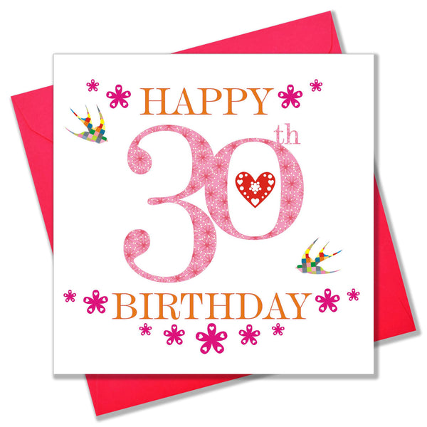 This pretty 30th birthday card will brighten anyones special day. It is printed with pink flowers and has a red heart, on high quality board from sustainable sources with bright matching envelope.