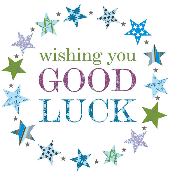 This Good Luck card is printed with a circle of coloured stars. Printed on high quality board from sustainable sources with bright matching envelope.