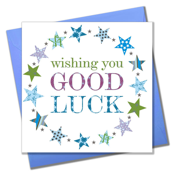 Good Luck Card, Blue Stars, wishing you Good Luck