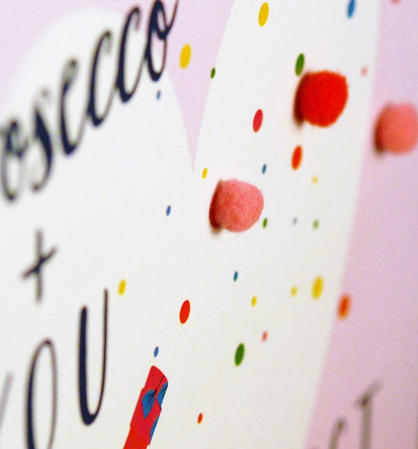 Valentine's Day Card, Fizz, Prosecco, Embellished with colourful pompoms