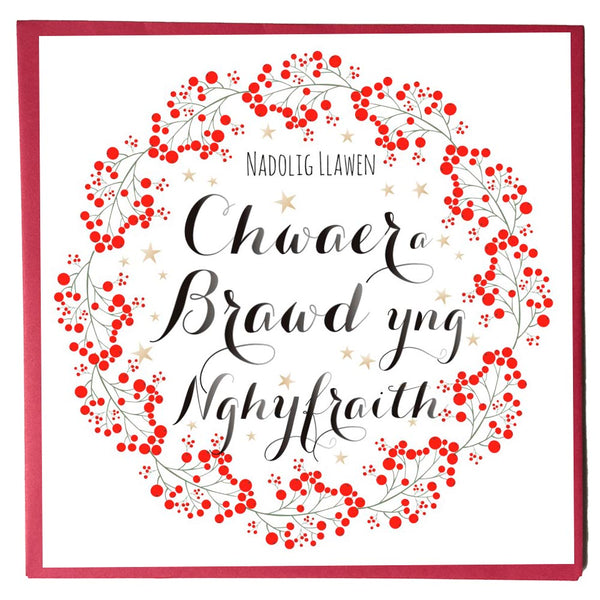 Welsh Christmas Card, Nadolig Llawen, Sister & Brother-in-law, Wreath of Berries
