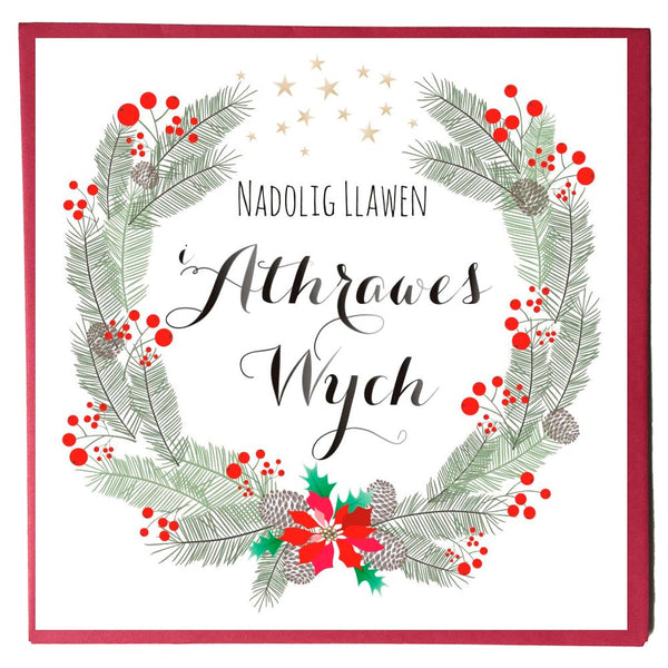Welsh Christmas Teacher Card, Nadolig Llawen, Athrawes Wych, Pine Cones