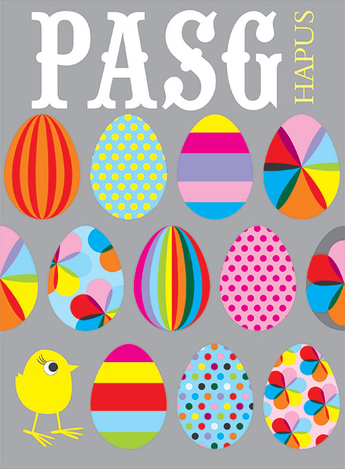 Welsh Easter Card, Pasg Hapus, Easter Eggs and Chick, Happy Easter