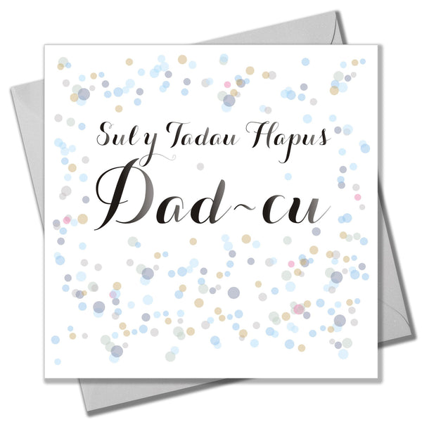 Welsh Father's Day Card, Sul y Tadau Hapus, Dad-cu, Blue Dots, Grandad