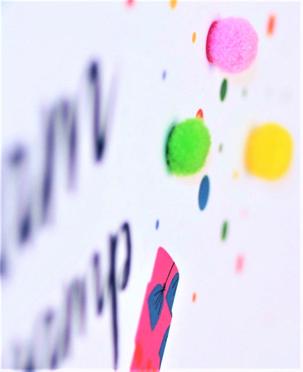 A beautiful bright Welsh language Mother's Day card, for that 'Fabulous Mum' who you want to pop a bottle of fizz with. Embellished with bright coloured pompoms and printed on high quality white board with a shiny golden envelope.
