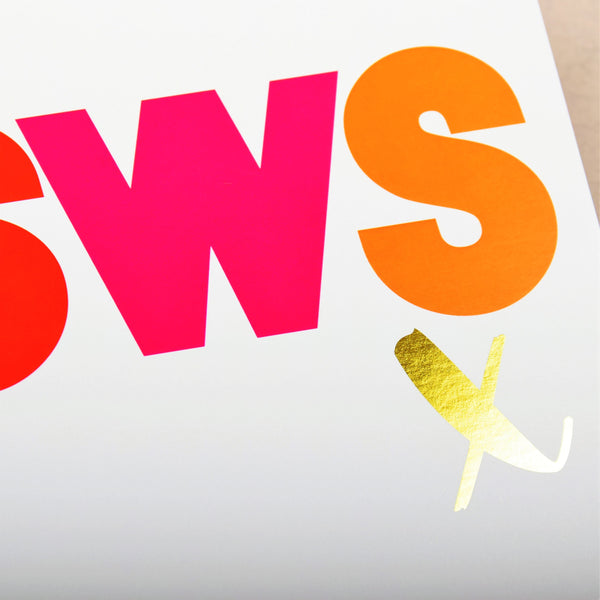 Welsh Valentines Day Card, SWS, Kiss, text foiled in shiny gold