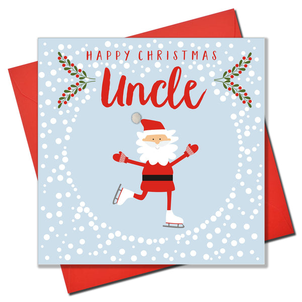 Christmas Card, Skating Santa , Happy Christmas, uncle, Pompom Embellished