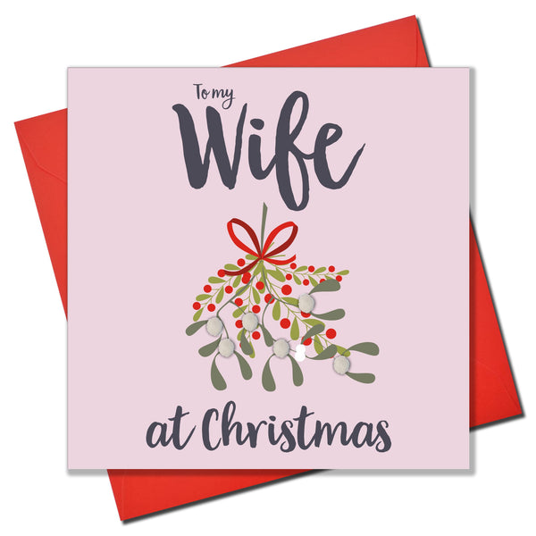 Christmas Card, Mistletoe , To my wife at Christmas, Pompom Embellished