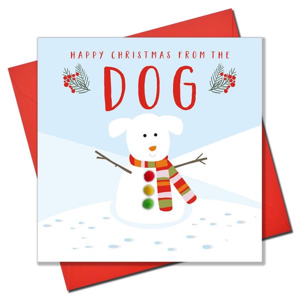 Christmas Card, Snowdog , Happy Christmas from the Dog, Pompom Embellished